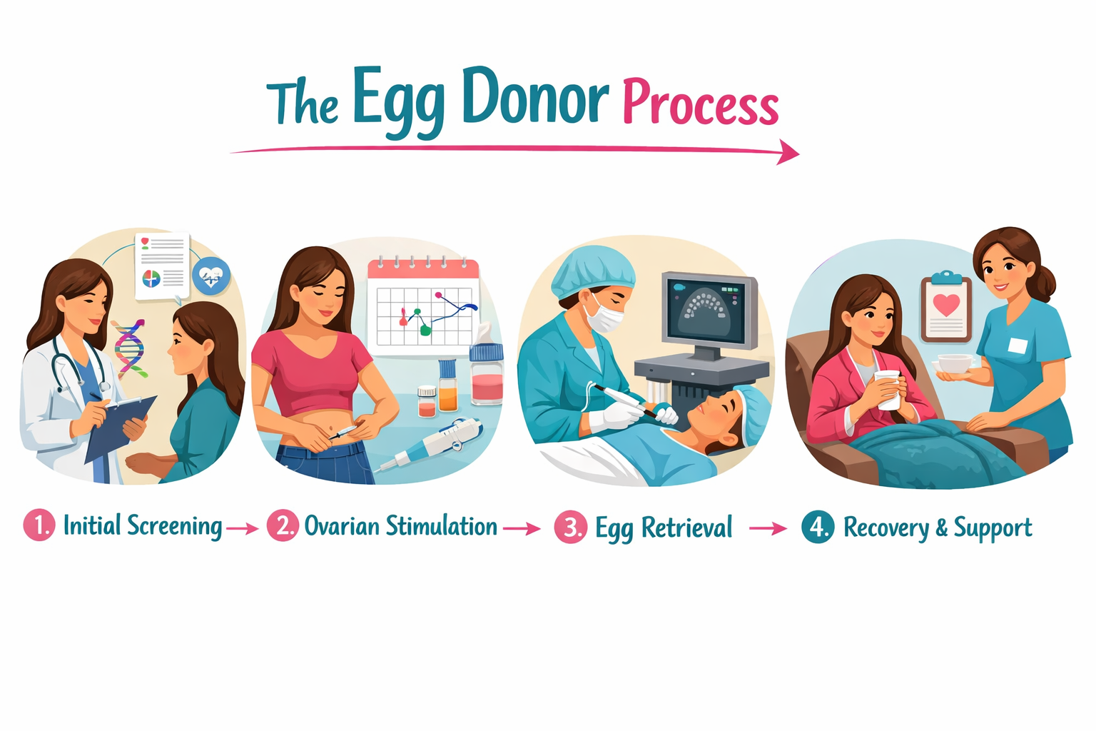 Potential donors complete an application and undergo medical, genetic, and psychological screenings to ensure eligibility.2. Cycle Preparation